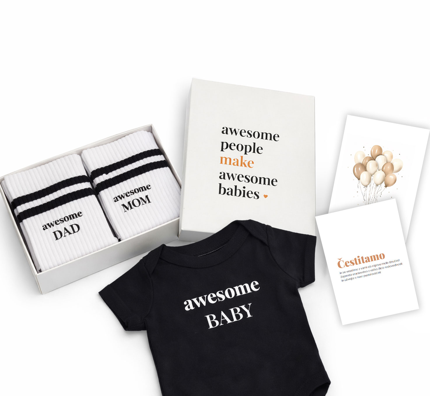 Paket Awesome family je popolno darilo za novo pečene starše.