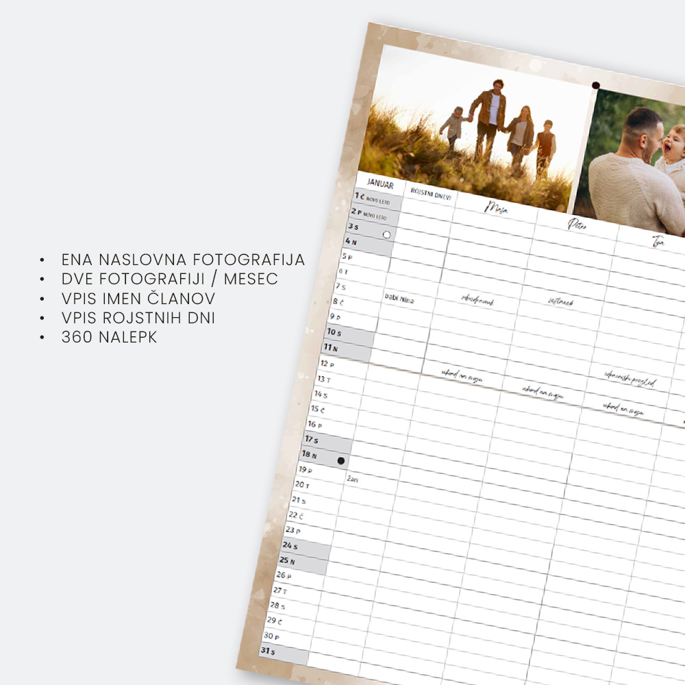 Izberite lahko med koledarji s prostorom za 2-4 družinske člane!