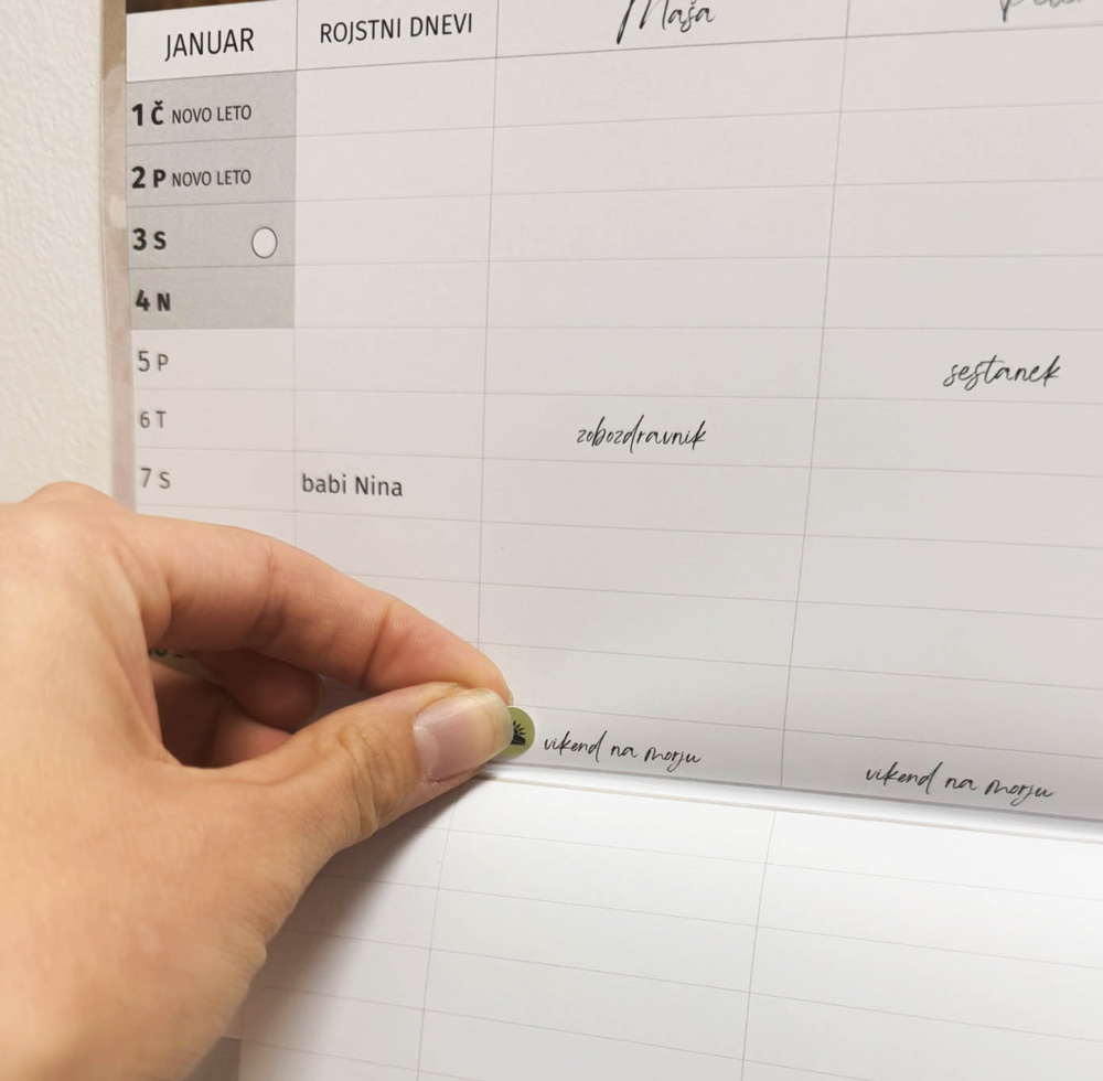 • Koledar za manj družinskih članov je enak, le posamezni stolpec je širši.
